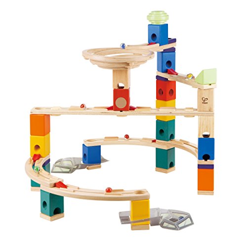 This Space City E6017 marble run, exclusively designed by Hape Toys, is a tried and tested kid's favourite. To see who will be the fastest space traveler, just launch the 176 marbles along cosmic boosts and glow-in-the-dark loops. Now, with the all n...