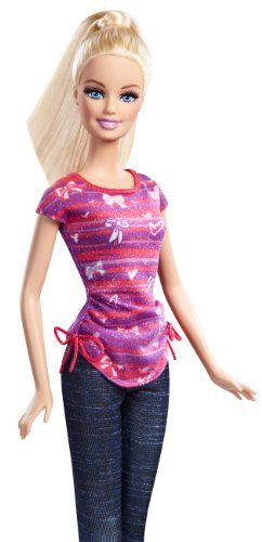 - Barbie doll looks adorable in casually cool capri pants and a striped t-shirt with beautiful bow details