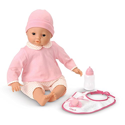 The soft-bodied Corolle Lila Cherie has sleeping eyes and baby-like features making her react to the childs care and affection like a real baby. Lila Cherie randomly babbles, cries or her cheeks turn red if you press her left hand. She cries if you p...
