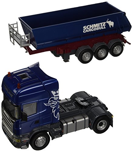 Radio controlled die cast Topline Scania and tipping trailer. Features include; adjustable (digital proportional) speed control, adjustable steering, working indicators, hazard lights, headlights, rear light, flashing beacon (two different flashing m...