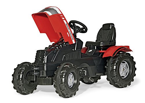 This extra large chain driven Massey Ferguson licensed tractor features anti-slip pedals, opening bonnet, front and rear hitch pins, rugged wheels and an adjustable seat. Suit ages 3+.< Product Safety Warning: Only for domestic use. Warning: To be us...